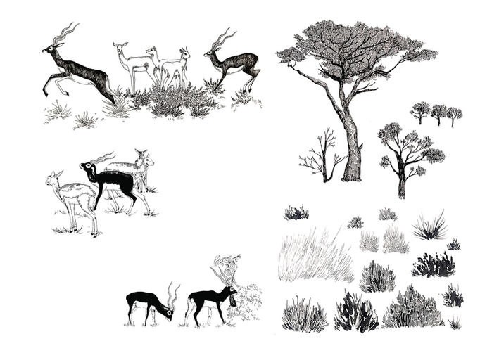 Drawing inspiration from the Blackbuck, I have tried to encapsulate the very essence of the majestic animal, incorporating its elusive yet dynamic statuesque, into my prints.